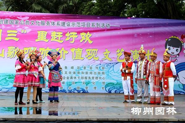 三月三是壮族人民的传统节日,为践行社会主义核心价值观,大力推进鱼峰歌圩在全国公共文化服务体系示范项目创建工作,积极开展我