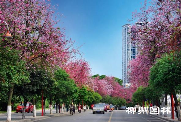 柳州市打造花园城市,以紫荆花都为品牌,成效已经显现。近年来,每年春季都吸引成千上万名国内外游客来柳观赏洋紫荆满城盛开的美