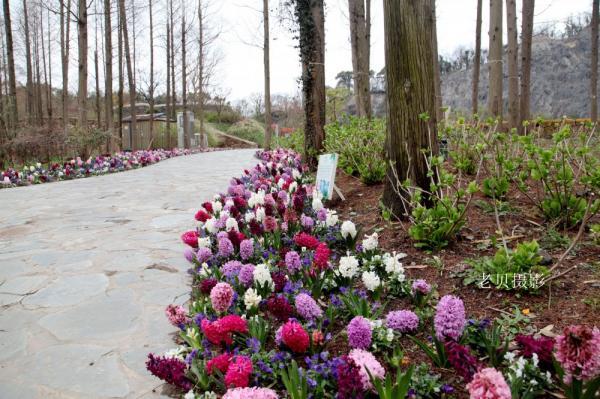 近日,在辰山植物园的矿坑花园出入口,一条布满风信子的花径正姹紫嫣红的盛开着,不同颜色的风信子以及夹在其中的各色角堇将